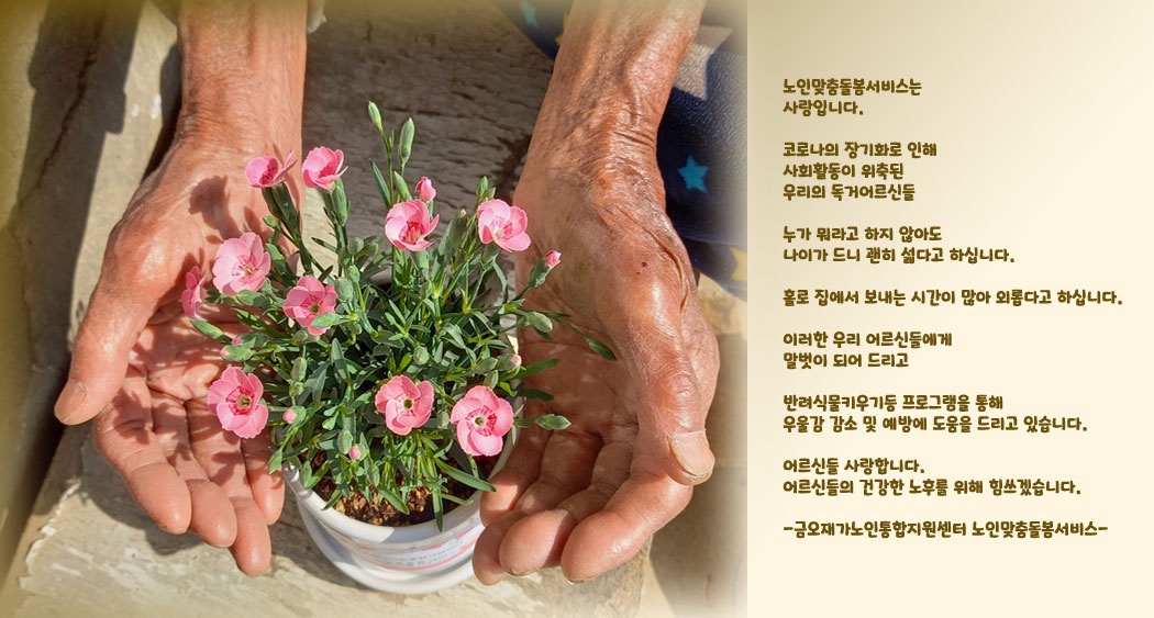 반려식물이 예뻐서 보듬는 어르신의 손이