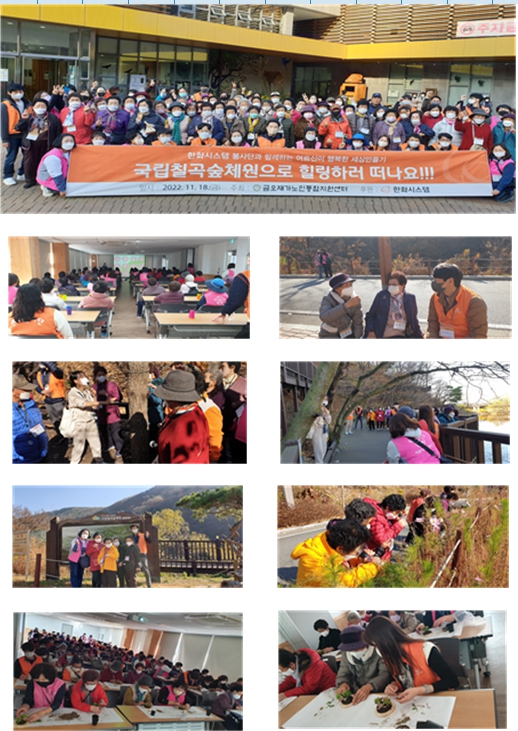11월18일(금)에는 저희센터 맞춤돌봄서비스 이용자 대상으로 한화시스템구미사업장 후원(360만원)으로 칠곡 숲체원 나들이를 다녀왔습니다.