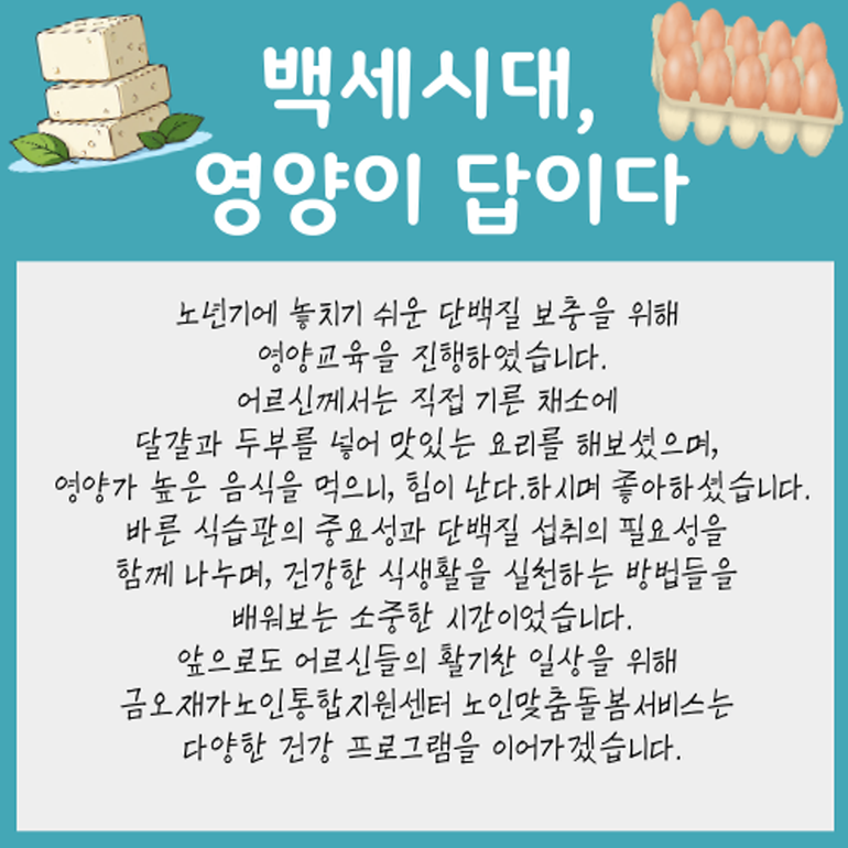 노인맞춤돌봄 영양교육프로그램-백세시대 영양이 답이다. 페이지 정보 작성자 관리자 댓글 0건 조회 543회 작성일 25-07-01 17:01 목록 게시판 리스트 옵션 검색 본문 이전글우울예방프로그램-스프링모스리스 및 드림캐처 만들기 25.07.03 다음글구미시청년새마을연대 "행복나눔 사랑의 물품전달" 25.06.17 댓글 0 댓글목록 등록된 댓글이 없습니다.