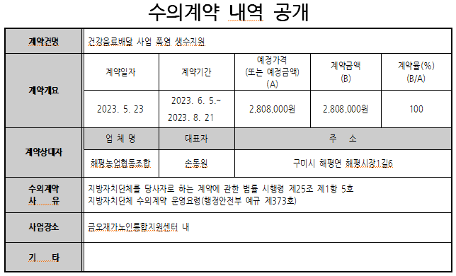 건강음료 배달사업 생수 수의계약 내역 공개 페이지 정보 작성자 관리자 댓글 0건 조회 3,410회 작성일 23-05-24 18:32 목록 본문 수의계약 내역 이전글노인맞춤돌봄서비스사업 수의계약 내역 공개 23.06.07 다음글재가노인지원서비스 사회복지사 채용 공고(마감) 23.04.24 댓글 0 댓글목록 등록된 댓글이 없습니다.