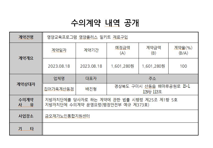 노인맞춤돌봄서비스사업 수의계약 내역 공개 페이지 정보 작성자 관리자 댓글 0건 조회 3,345회 작성일 23-08-22 17:50 목록 본문 노인맞춤돌봄서비스사업 수의계약 내역 공개 이전글농어촌상생협력기금 고효율 LED전등 교체사업 수의계약 내역 공개 23.10.12 다음글서부발전 후원 복날맞이 삼계탕 구입 수의계약 내역 공개 23.08.14 댓글 0 댓글목록 등록된 댓글이 없습니다.