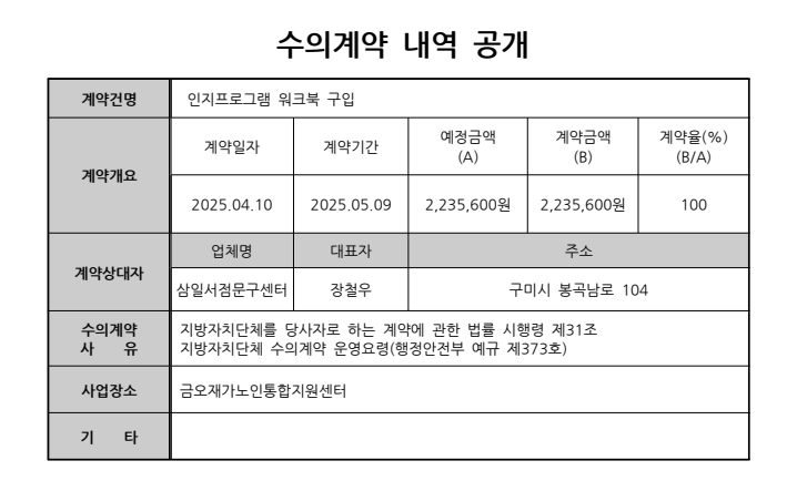 노인맞춤돌봄서비스사업 인지프로그램 수의계약 내역 공개 > 공지사항