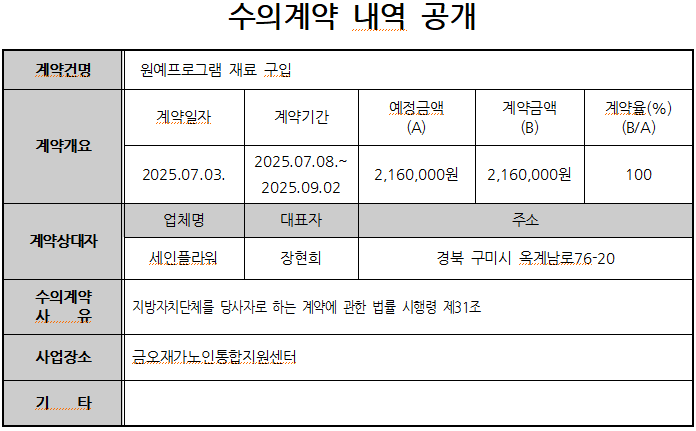 노인맞춤돌봄서비스사업 여가활동 원예프로그램 수의계약 내역 공개