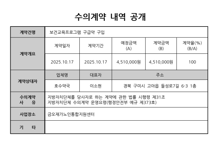 노인맞춤돌봄서비스사업 보건교육 프로그램 수의계약 내역